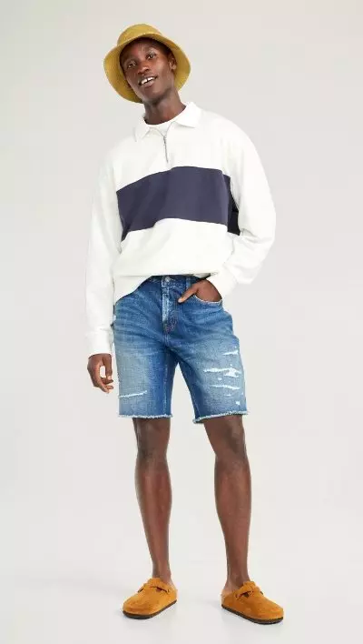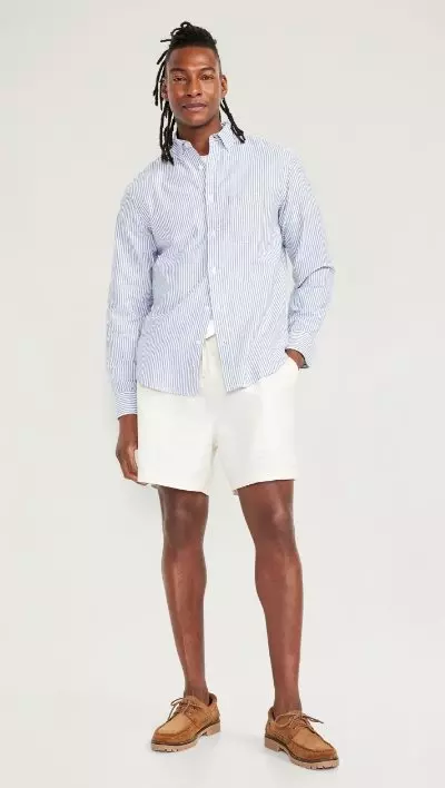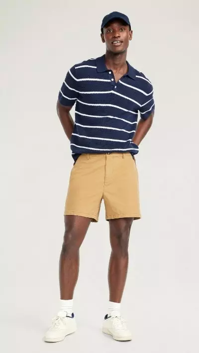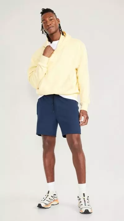 Sun's out, leg's out! Warmer weather is here, so start stocking up on men's shorts from Old Navy! Our men's shorts are comfy, stylish, and simply versatile. Explore our collection of classic chino shorts, cozy-knit cotton shorts, and trendy denim shorts (as well as our casual jogger shorts -- perfect for kickin' back). Our men's shorts are made from high-quality materials that are soft yet sturdy meaning they are built to last, guys! Check out the various fits available, including regular, slim, and relaxed! You are sure to find the perfect pair. Plus, you've got even more options as there are plenty of colors, patterns, and lengths to choose from. Timeless neutrals to vibrant hues and playful prints, our men's shorts can easily be mixed and matched with other items in your wardrobe. So changing up your 'fit is easy-peasy! Shopping for men's shorts at Old Navy is a breeze, with options to shop online or in-store. Our website provides detailed product information and size charts! Plus, our friendly customer service team is always ready to assist. Whether you're hitting the beach, going for a stroll, or just out and about with the fam, our men's shorts are designed to keep you comfortable, stylish, and ready for any adventure! So why wait? Upgrade your summer wardrobe with the latest men's shorts from Old Navy. Shop now and find the perfect pair of shorts to elevate your summer 'fit game.