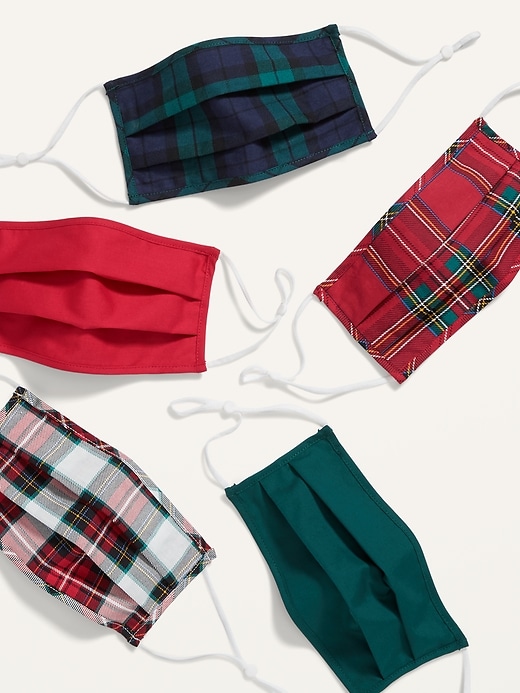 - Pack includes 5 reusable, personal-use, non-medical-grade, pleated cloth face masks for adults, in assorted colors, prints and patterns.