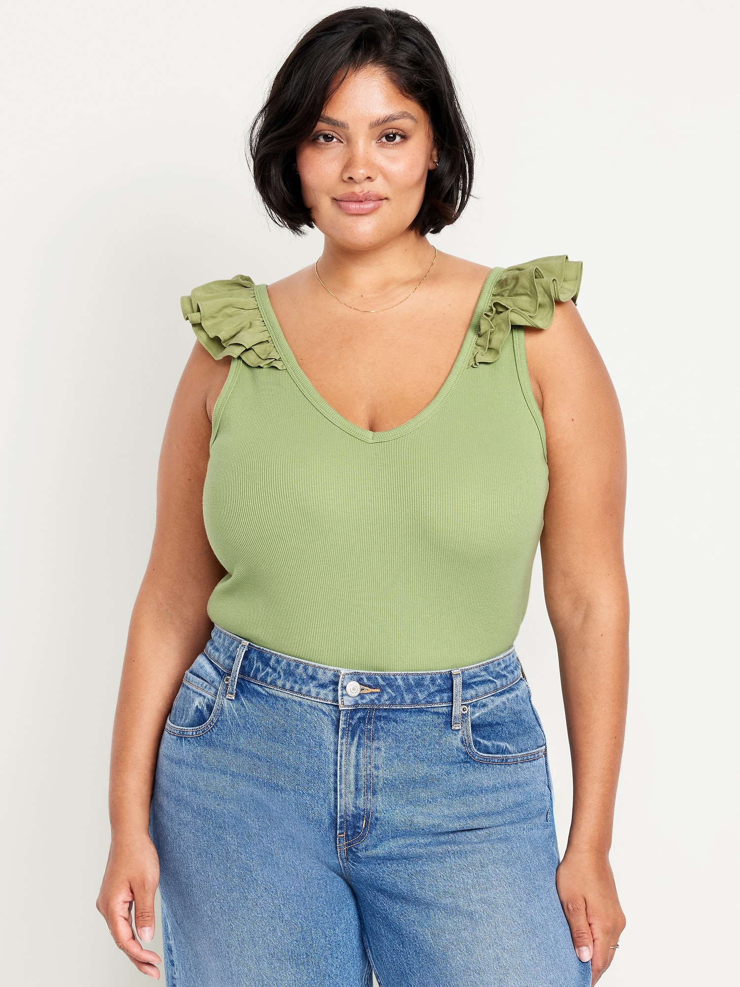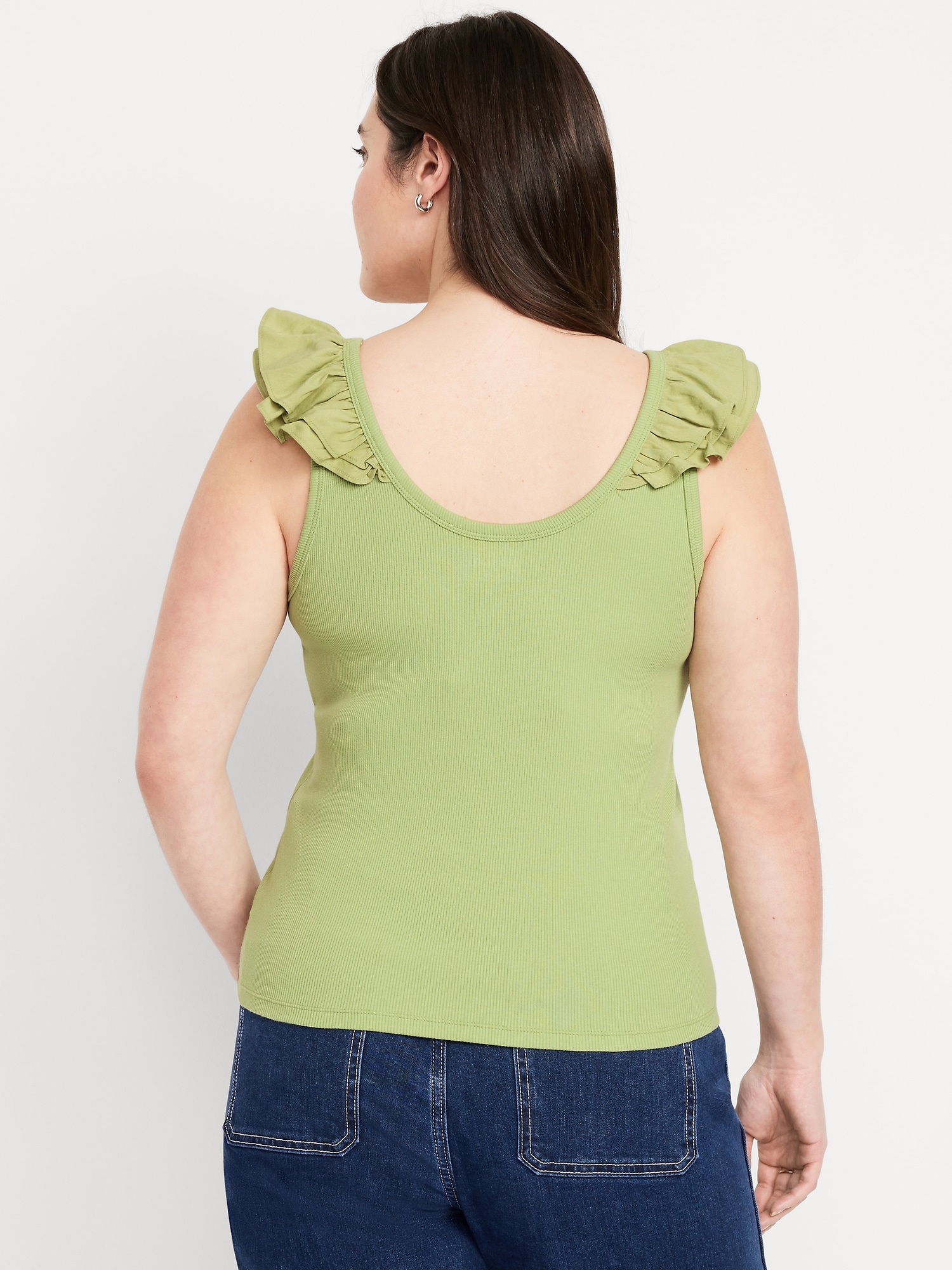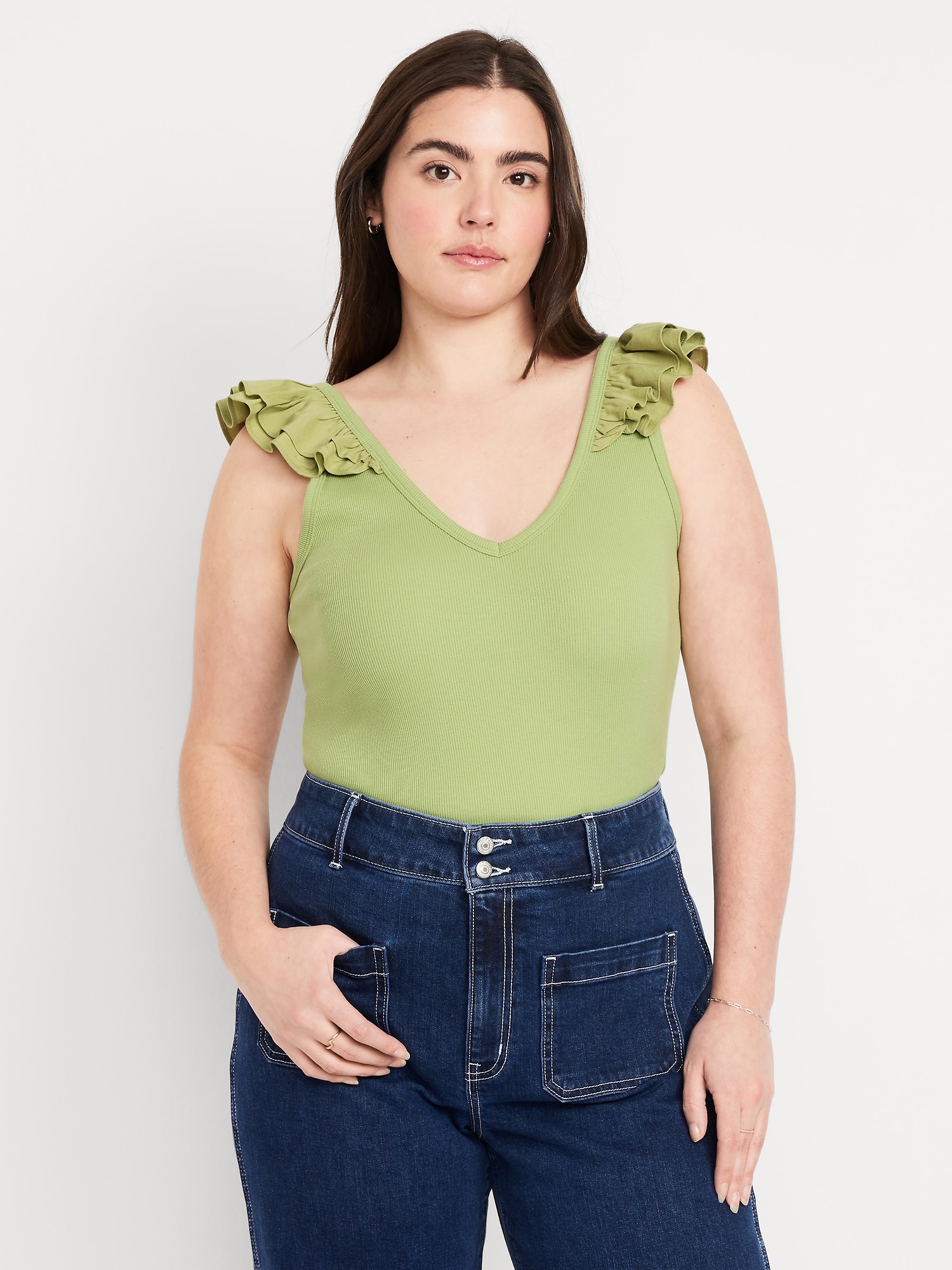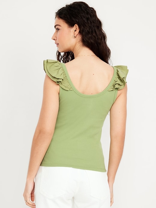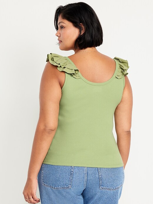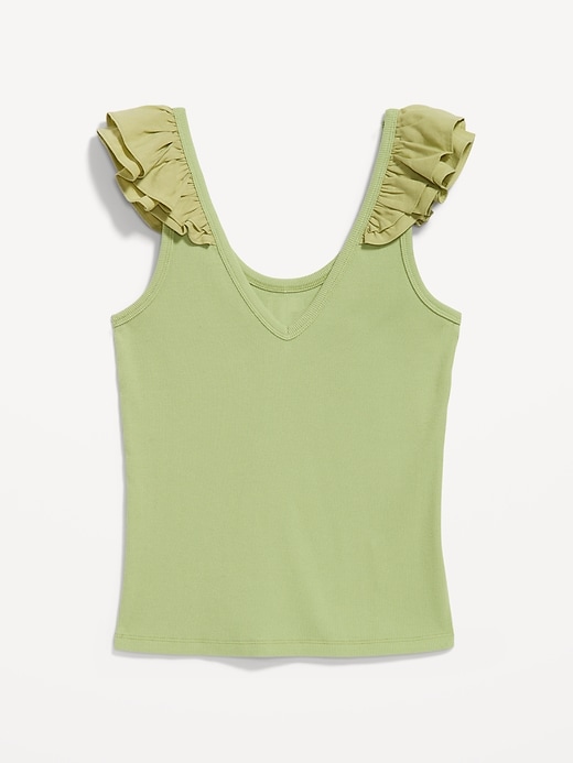 Ruffle-Trim Mixed Material Top