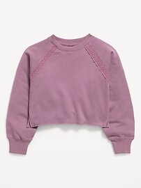 Lace-Trim French Terry Cropped Sweatshirt for Girls
